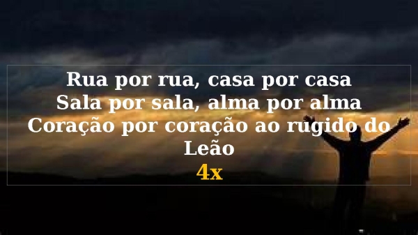 - Rua por rua, casa por casaSala por sala, alma por almaCoração por coração ao rugido do Leão4x