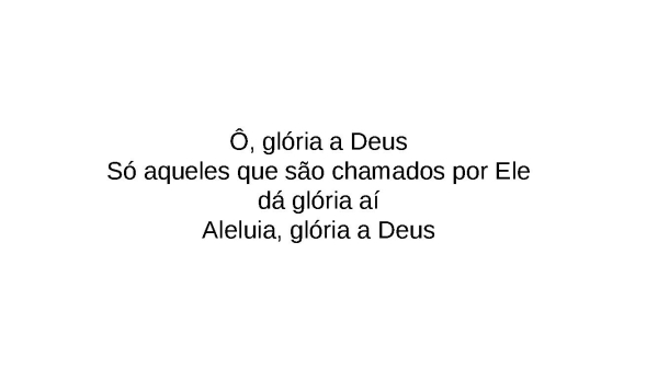 - Ô, glória a DeusSó aqueles que são chamados por Ele dá glória aíAleluia, glória a Deus