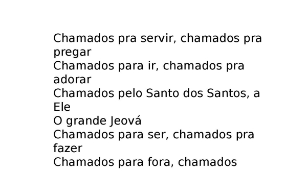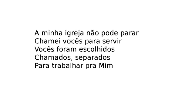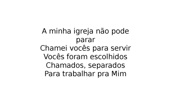 - A minha igreja não pode pararChamei vocês para servirVocês foram escolhidosChamados, separadosPara trabalhar pra Mim