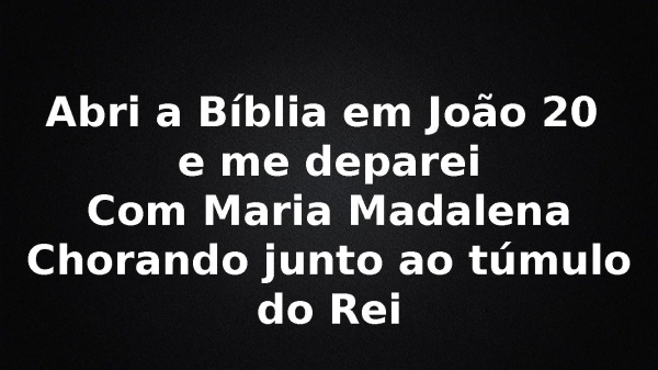 - Abri a Bíblia em João 20 e me depareiCom Maria MadalenaChorando junto ao túmulo do Rei