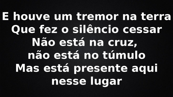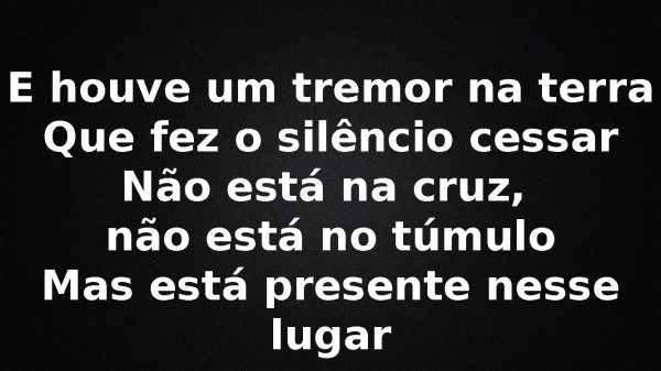 - E houve um tremor na terraQue fez o silêncio cessarNão está na cruz, não está no túmuloMas está presente nesse lugar