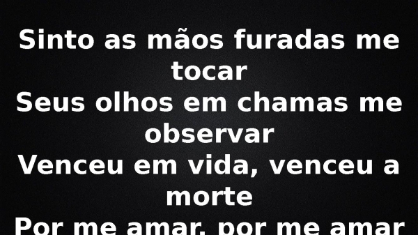 - Sinto as mãos furadas me tocarSeus olhos em chamas me observarVenceu em vida, venceu a mortePor me amar, por me amar