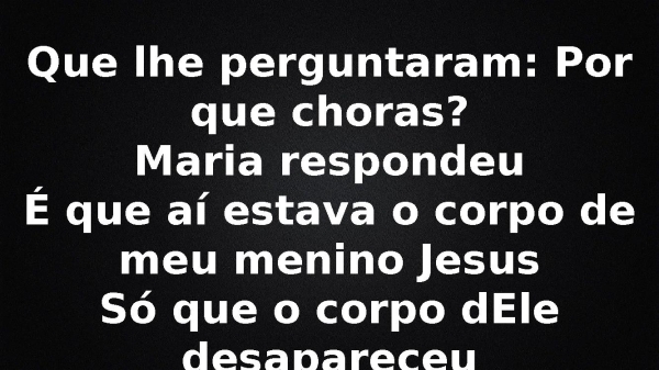 - Que lhe perguntaram: Por que choras?Maria respondeuÉ que aí estava o corpo de meu menino JesusSó que o corpo dEle desapareceu