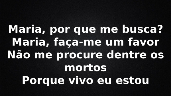 - Maria, por que me busca?Maria, faça-me um favorNão me procure dentre os mortosPorque vivo eu estou