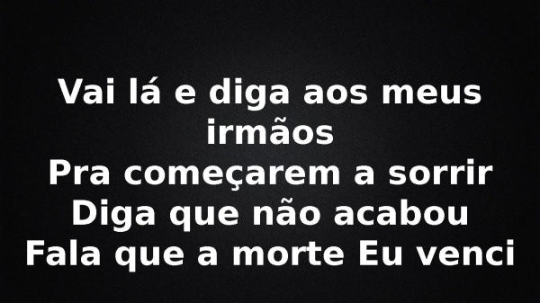- Vai lá e diga aos meus irmãosPra começarem a sorrirDiga que não acabouFala que a morte Eu venci