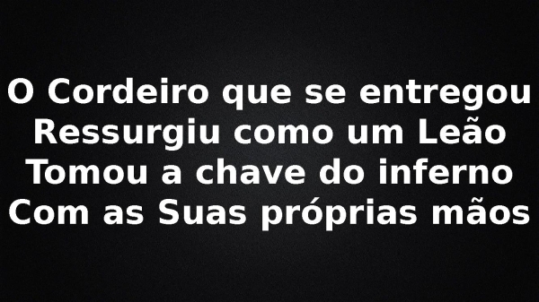 - O Cordeiro que se entregouRessurgiu como um LeãoTomou a chave do infernoCom as Suas próprias mãos