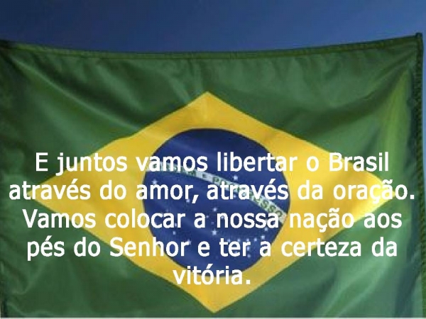 - E juntos vamos libertar o Brasilatravés do amor, através da oração.Vamos colocar a nossa nação aos pés do Senhor e ter a certeza da vitória.