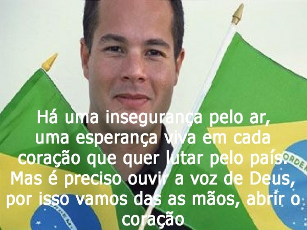 - Há uma insegurança pelo ar,uma esperança viva em cada coração que quer lutar pelo país.Mas é preciso ouvir a voz de Deus,por isso vamos das as mãos, abrir o coração