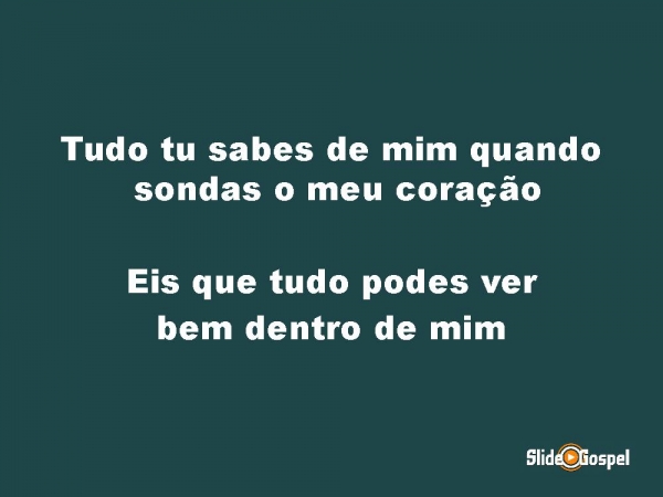- Tudo tu sabes de mim quando sondas o meu coração Eis que tudo podes verbem dentro de mim