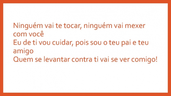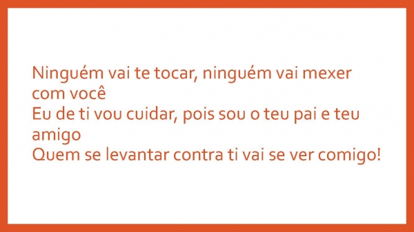 - Ninguém vai te tocar, ninguém vai mexer com vocêEu de ti vou cuidar, pois sou o teu pai e teu amigoQuem se levantar contra ti vai se ver comigo!