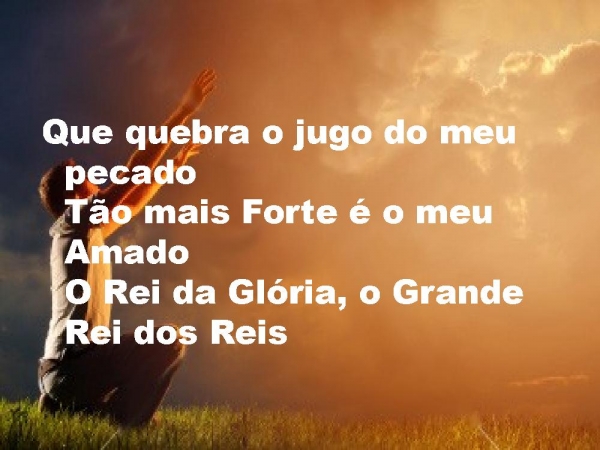 - Que quebra o jugo do meu pecadoTão mais Forte é o meu AmadoO Rei da Glória, o Grande Rei dos Reis