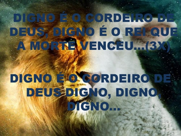 - DIGNO É O CORDEIRO DE DEUS, DIGNO É O REI QUE A MORTE VENCEU...(3X)DIGNO É O CORDEIRO DE DEUS DIGNO, DIGNO, DIGNO...