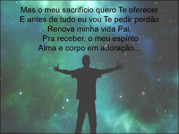 - Mas o meu sacrifício quero Te oferecerE antes de tudo eu vou Te pedir perdãoRenova minha vida Pai, Pra receber, o meu espíritoAlma e corpo em adoração...