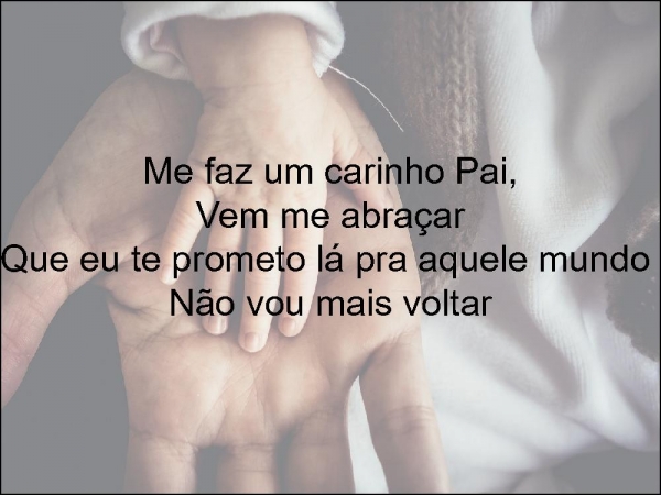 - Me faz um carinho Pai,Vem me abraçarQue eu te prometo lá pra aquele mundo Não vou mais voltar