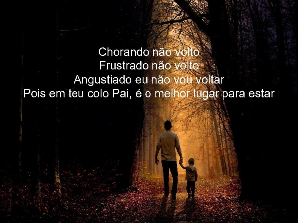 - Chorando não voltoFrustrado não voltoAngustiado eu não vou voltarPois em teu colo Pai, é o melhor lugar para estar