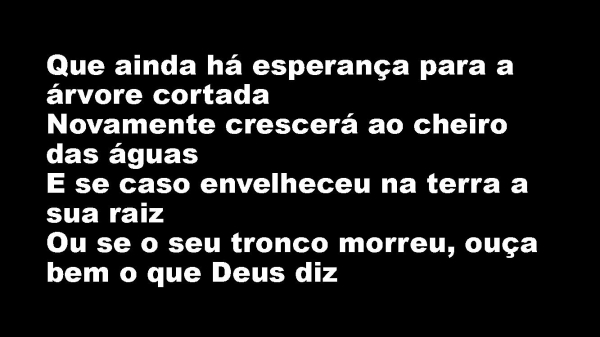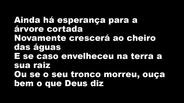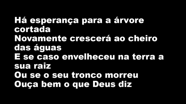 - Há esperança para a árvore cortadaNovamente crescerá ao cheiro das águasE se caso envelheceu na terra a sua raizOu se o seu tronco morreuOuça bem o que Deus diz