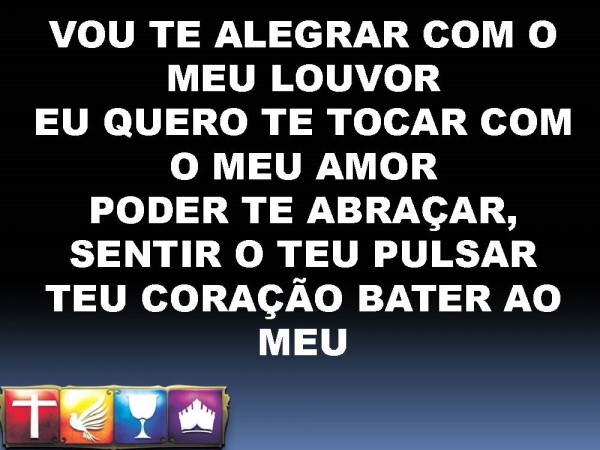 - VOU TE ALEGRAR COM O MEU LOUVOREU QUERO TE TOCAR COM O MEU AMORPODER TE ABRAÇAR, SENTIR O TEU PULSARTEU CORAÇÃO BATER AO MEU