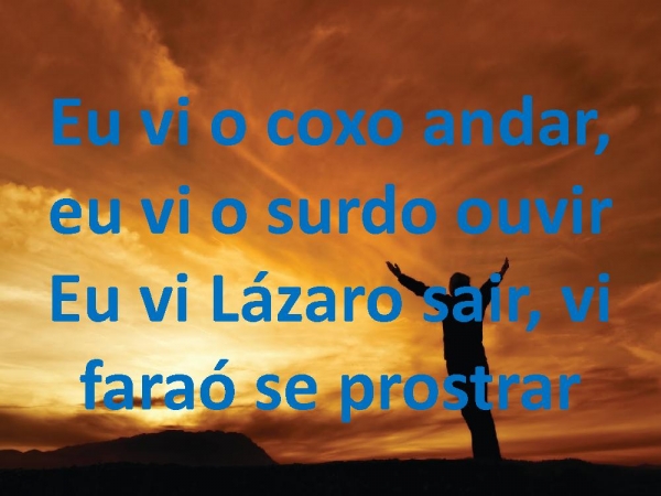 - Eu vi o coxo andar, eu vi o surdo ouvirEu vi Lázaro sair, vi faraó se prostrar