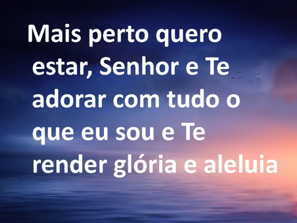 - Mais perto quero estar, Senhor e Te adorar com tudo o que eu sou e Te render glória e aleluia