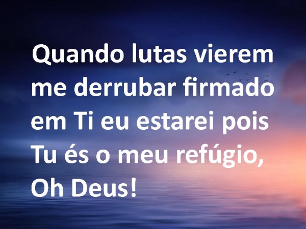 - Quando lutas vierem me derrubar firmado em Ti eu estarei pois Tu és o meu refúgio, Oh Deus!