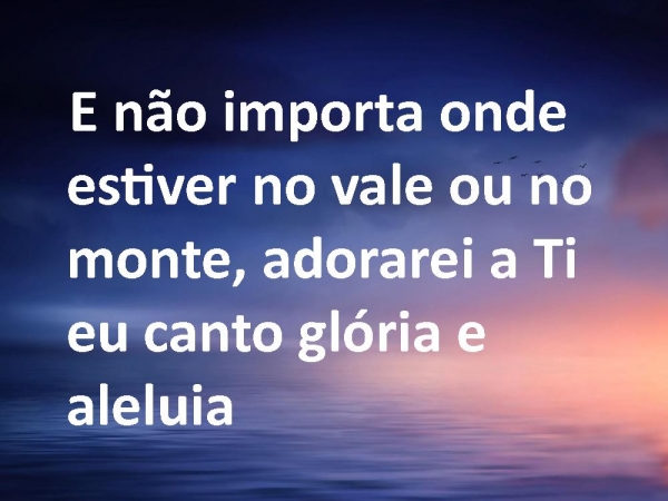 - E não importa onde estiver no vale ou no monte, adorarei a Ti eu canto glória e aleluia
