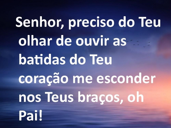 - Senhor, preciso do Teu olhar de ouvir as batidas do Teu coração me esconder nos Teus braços, oh Pai!