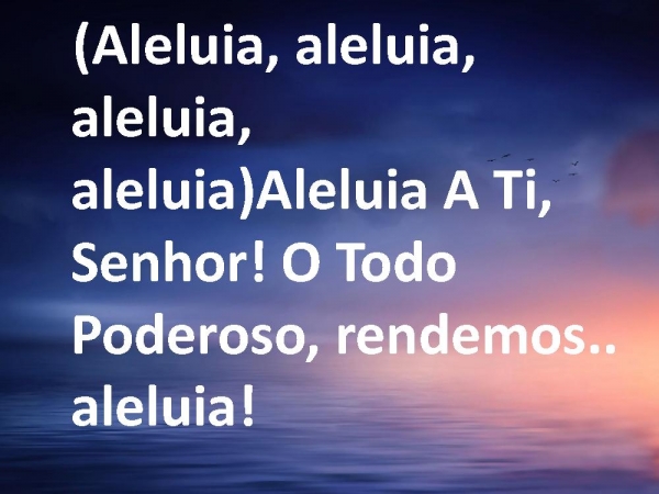 - (Aleluia, aleluia, aleluia, aleluia)Aleluia A Ti, Senhor! O Todo Poderoso, rendemos.. aleluia!