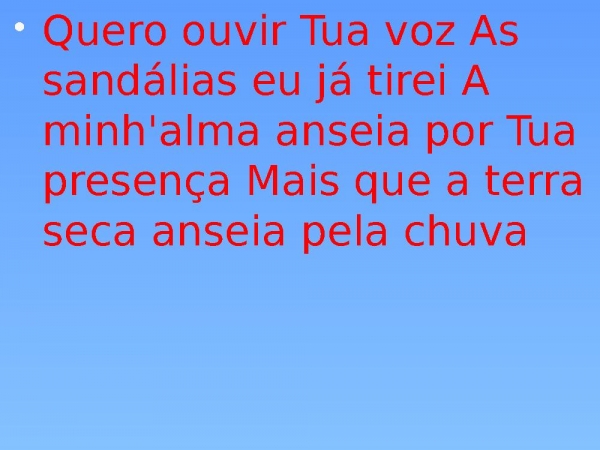 - Quero ouvir Tua voz As sandálias eu já tirei A minh'alma anseia por Tua presença Mais que a terra seca anseia pela chuva