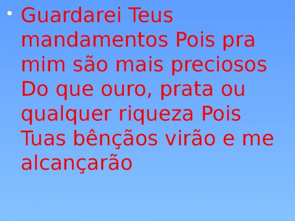 - Guardarei Teus mandamentos Pois pra mim são mais preciosos Do que ouro, prata ou qualquer riqueza Pois Tuas bênçãos virão e me alcançarão